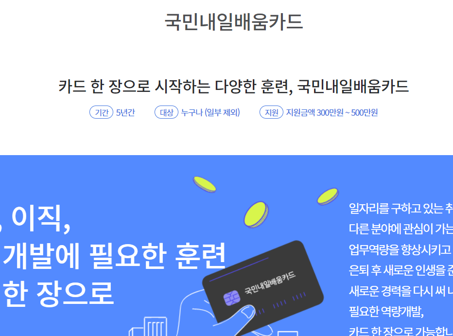 취업을 준비하시는 분들이라면 내일 배움 카드에 대해서 대충들 알고 계실 거예요. 저도 쓸 수 있는 상황이긴 한데 몸이 안 좋아서 도전을 못하고 있네요. 오늘은 내일 배움 카드 정보에 대해서 알려드릴게요!