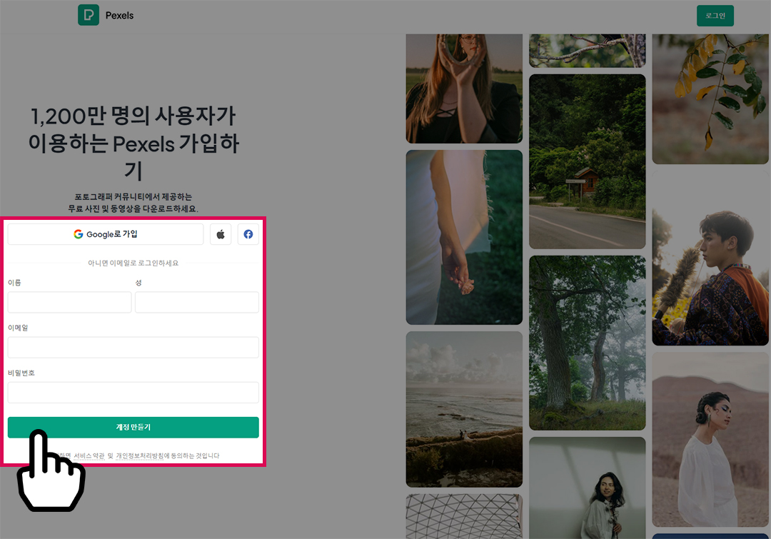 - 가입버튼을 누른 후 이동된 화면에서 콘텐츠 다운로드용 선택해 주시고요. 그다음 화면에서 아래와 같이 가입 및 로그인을 진행해 줍니다. 구글로 가입하시면 편해요.