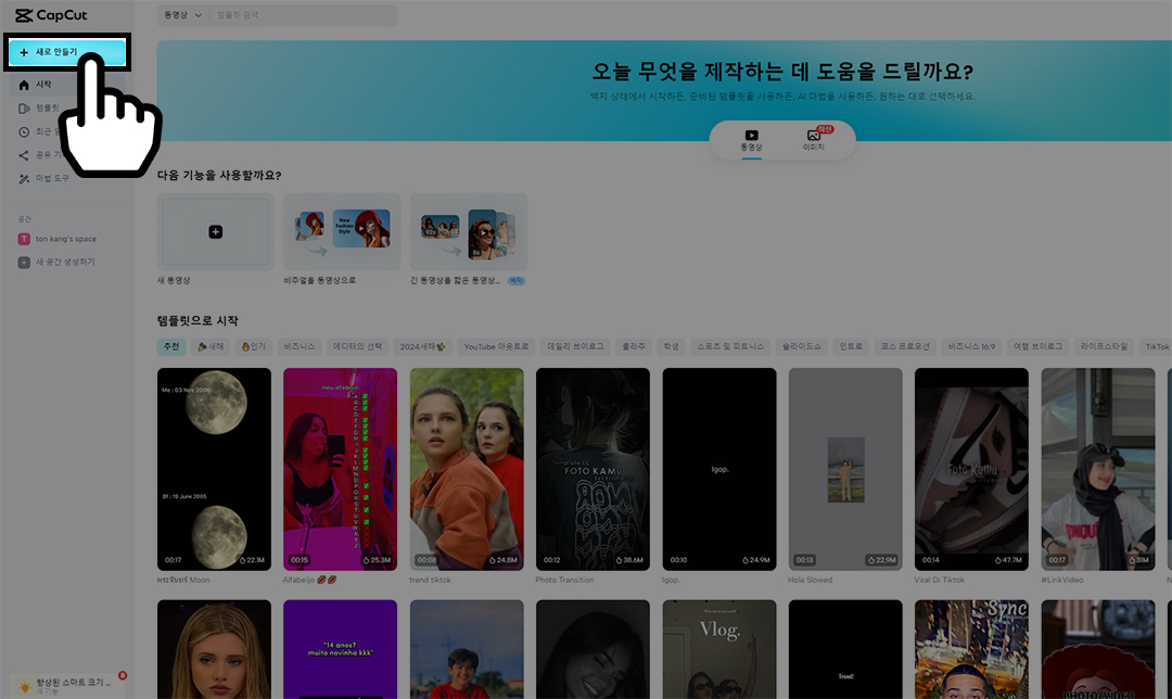 - 회원가입 후 좌측상단에 새로 만들기 버튼을 클릭합니다.