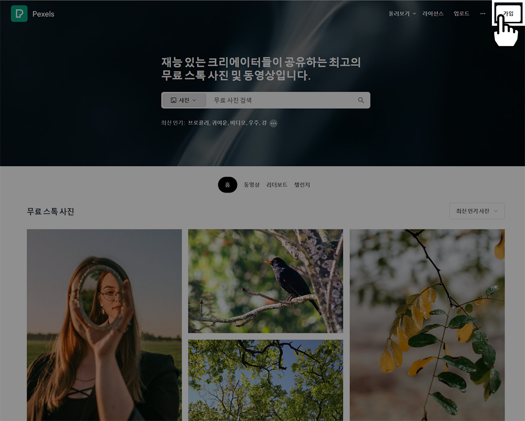 STEP 1. 검색 부분에서 사진을 검색할 건지 동영상을 검색할 건지 선택해 주세요.